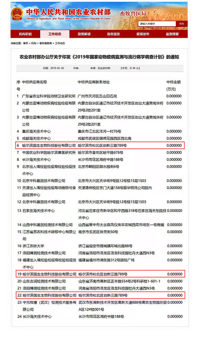 2019年成為國家首批動物疫病監測服務外包的合格供應商